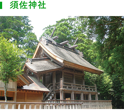 ヤマタノオロチを退治した須佐之男命(すさのおのみこと)に関わりが深く、『出雲国風土記』の須佐郷の条には、須佐之男命が当地に来て最後の開拓をし、「この国は小さい国だがよい国だ。自分の名前は岩木ではなく土地につけよう」と言って「須佐」と命名し、自らの御魂を鎮めたと記されています。須佐神社には七不思議があり、その七不思議の一つではある、境内にある「塩井(しおのい)」という湧き水は、スサノヲノミコトが土地を清めた水で、「稲佐の浜」とつながっていて潮の満ち引きで水量が違うと言われています。